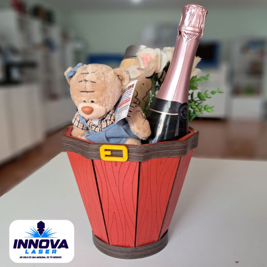 Caja para botella corazón love cortado en las maquinas laser en material mdf texturizado de 3mm.